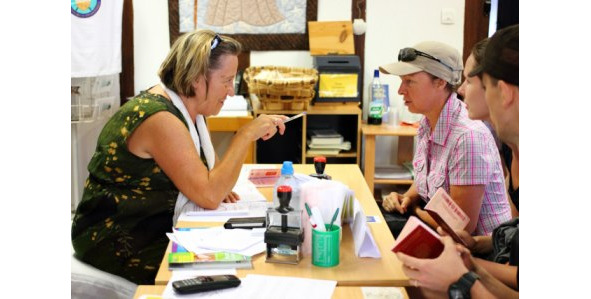 Регистрация в офисе Сен-Жан-Пье-де-Пора. 23.08.2014. Фото Игоря Захарова.