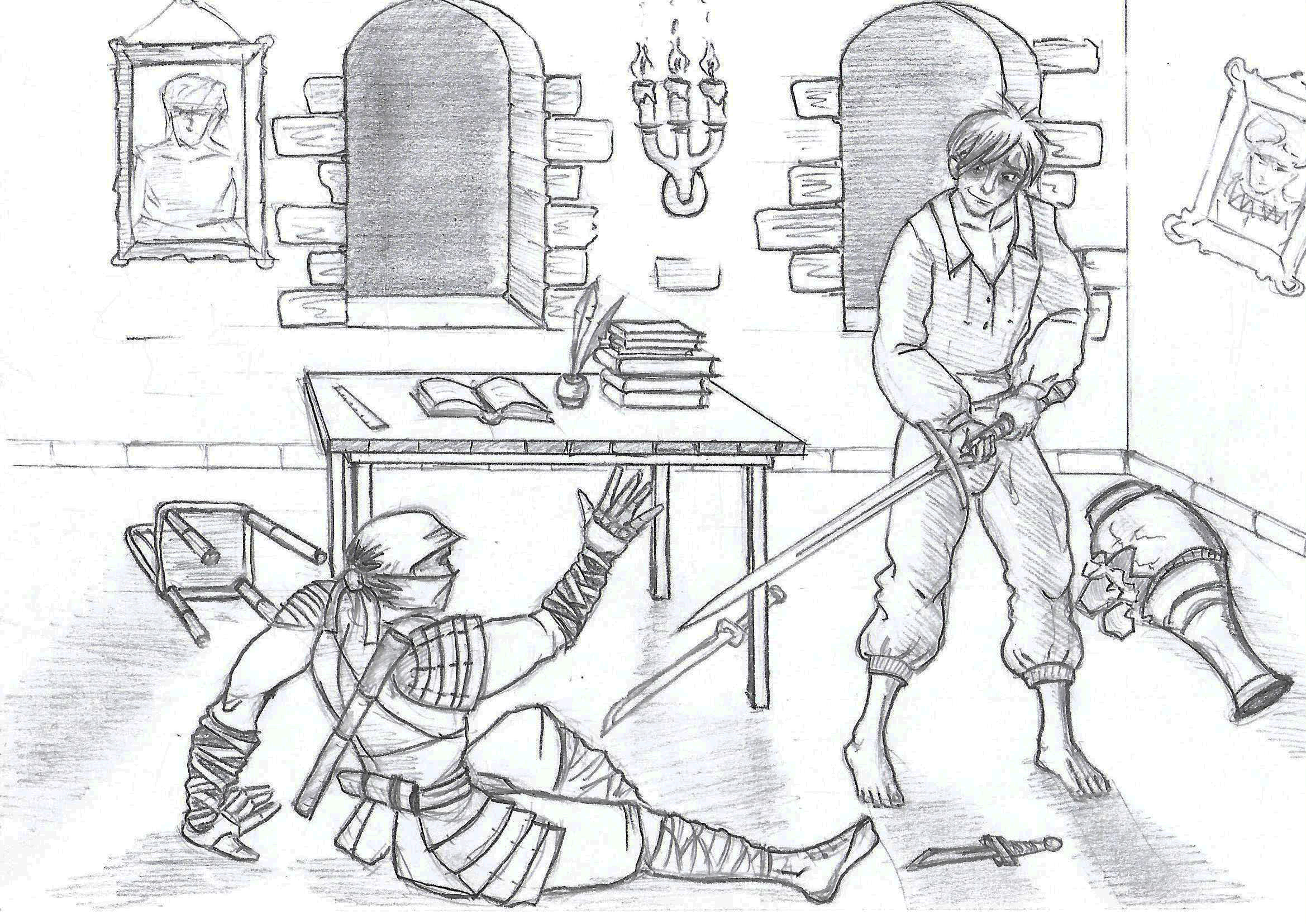 Пускай раны на моём теле и зажили, но раны на сердце и душе не заживут никогда, мне до сих пор кажется, что я всё ещё чувствую всё то, что со мной вытворяли, словно это и не прекращалось. Однажды ночью я услышал непонятный шорох и, не задумываясь, схватился за меч, ожидая нападения, но его не последовало, словно мне всё это просто показалось, но я так не думал, я продолжал сидеть час и два, вздрагивая от каждого шороха. Я просидел всю ночь, толком и не поспав. Следующую ночь повторилось то же самое. Это продолжалось невероятно долго, около десятка бессонных, проведённых впустую ночей. Но наконец, я дождался! Похитители пробрались в мою комнату, но они не знали, что я уже поджидал их, спрятавшись под кроватью с мечом. Один из них подошёл достаточно близко, и я одним движением отрубил ему ногу. Он упал на пол, а второй тут же нырнул под кровать, но слишком поздно! Когда он нагнулся, чтобы заглянуть под кровать, я уже стоял над ним, с возведенным вверх мечом. Кто ж знал, что рубить головы так легко, никаких угрызений совести и моральных терзаний. Просто свист и небольшое сопротивление идеального клинка. И что меня удивило и даже немного позабавило, так то, что голова не сразу отлетела, а медленно, с чавканьем съехала с шеи, и человек при этом продолжал стоять на ногах.