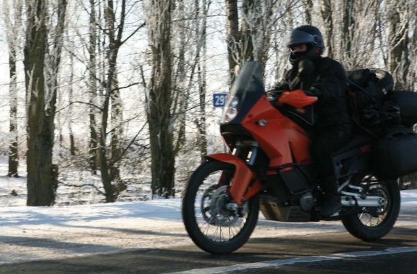 Чтобы не ехать по снегу, добрались до Адлера на поезде. Дальше своим ходом через Керчь в Одессу, чтобы сесть там на паром до Стамбула. На обледенелой дороге с непривычки было сложно управлять мощным и нагруженным мотоциклом.