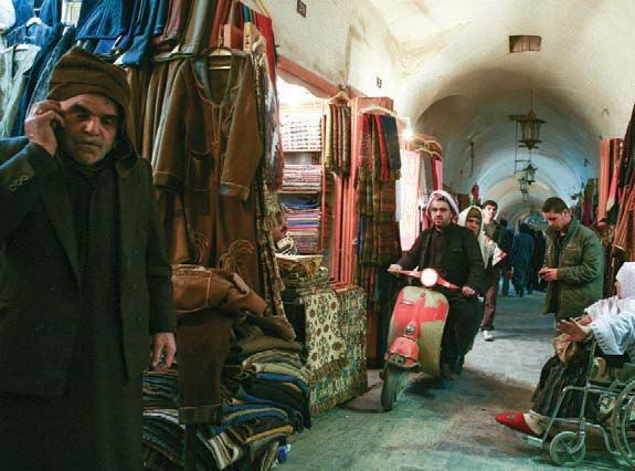 По узким улицам Старого города ездили мини-грузовички с товаром. Как они умудрялись маневрировать? Между бортами грузовичков и стенами домов было так мало места, что пешеходы не могли протиснуться. Но сирийцы тесноты не замечали. Посреди толпы ходил человек с огромным кофейником, разливавший кофе в маленькие чашки. Даже застрять в пешеходно-автомобильной пробке можно было с комфортом.