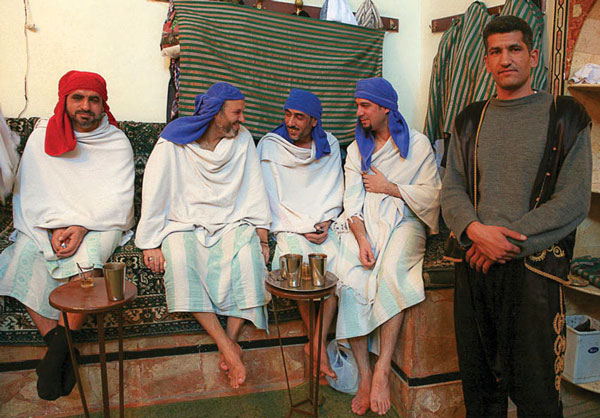 В холодной наливали чай, разжигали кальян и вели разговоры. В горячей на полу у огромных каменных ваз с водой сидели голые мужики, намыливали друг друга и поливали из металлических плошек. Несмотря на густые облака пара, полотенец с бёдер никто не снимал. В мусульманской стране раздеваться догола неприлично даже в бане.