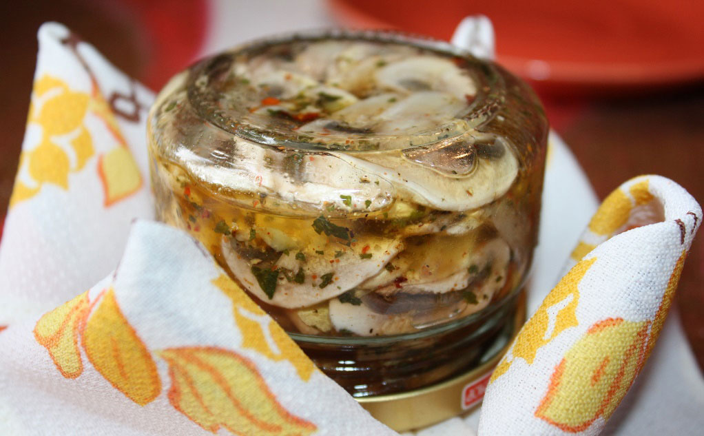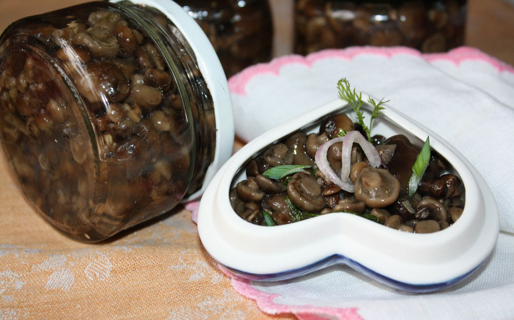 Грибы вместе с маринадом переложить в стеклянную баночку с крышкой, поставить на 2–3 часа в холодильник.