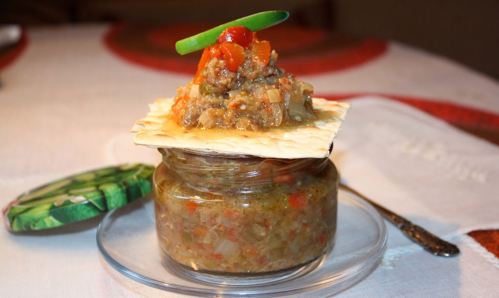 Баклажаны запечь в гриле духовки или на открытом огне (газовой горелке), остудить в закрытой крышкой посуде, очистить от кожи.