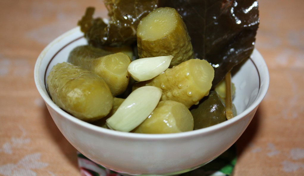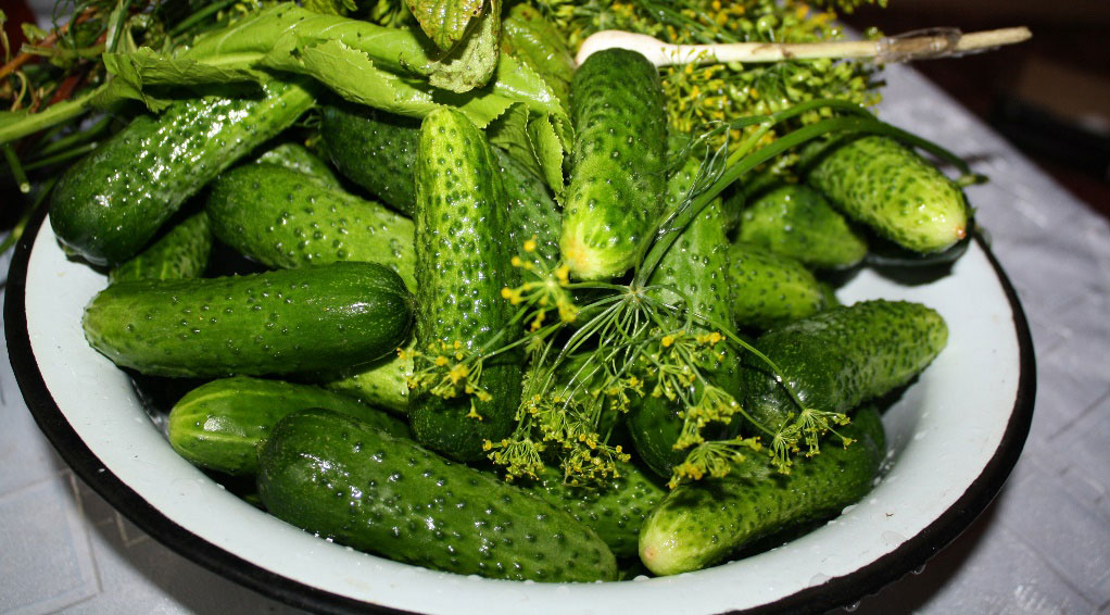 Маленькие огурчики с грядки (или просто молодые), листья смородины, листья вишни, корень хрена (можно высушенный), нарезанные кусочками листья хрена, стрелки или листья чеснока, очищенные зубчики чеснока, зонтики укропа или другой набор пряностей и приправ по вкусу.