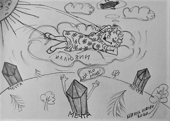 Рис. 4. Витая в облаках иллюзий мы уплываем от мечты.