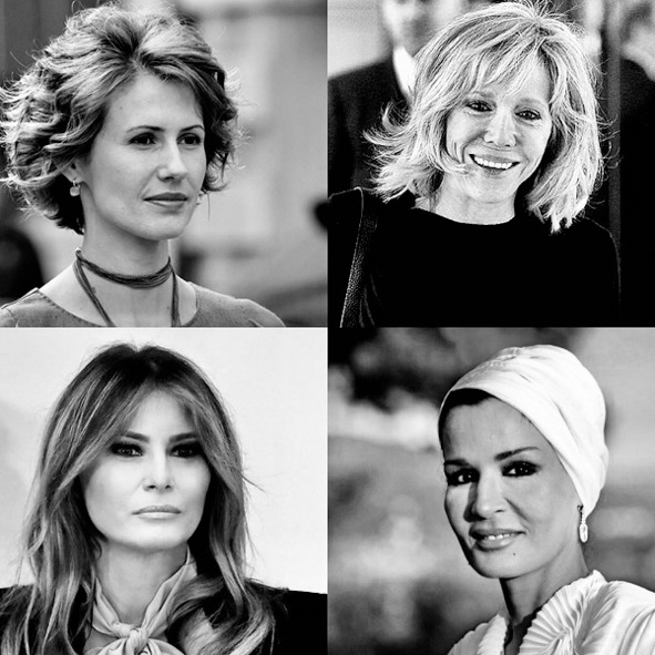 Рис. 17. Асма Асад, Брижит Макрон, Мелания Трамп, Моза аль-Миснед.