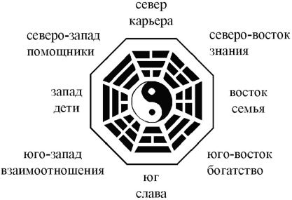 Ну а теперь нужно продемонстрировать окружающим свою успешность: одеться, обуться, причесаться и с чувством собственного достоинства, полученного при анализе, пройтись на людях. А вечером на девяти отдельных листах нужно составить план своего успеха, и опираться в нем нужно на информацию из анализа: заполнить все слабые места, чтобы Ваш успех стал развиваться во всех девяти зонах багуа. Можно это также сделать на большом листе ватмана, расчертив его на девять частей (см. рисунок).