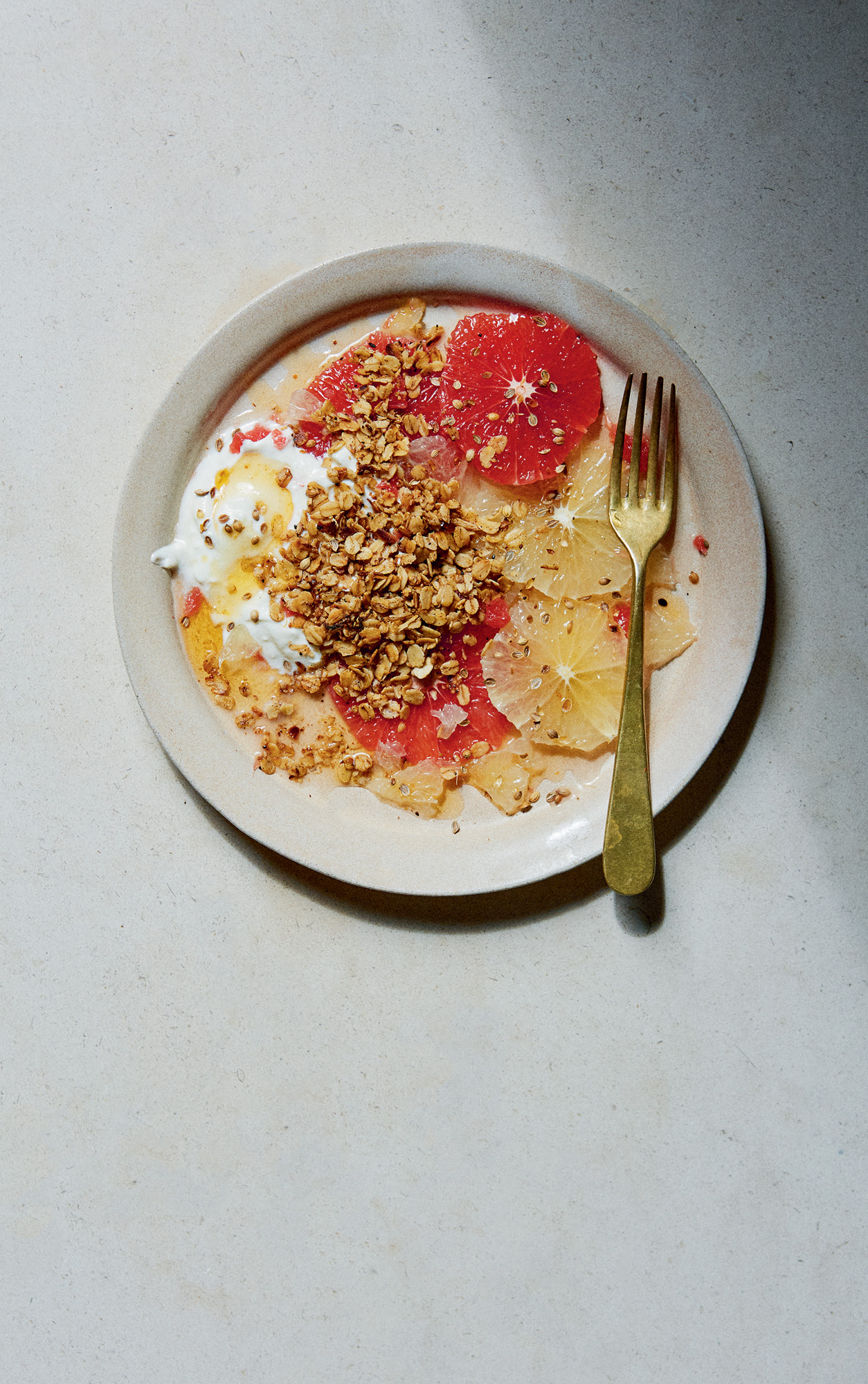 I eat fruit for breakfast every day but at the start of the year I find my fruit bowl a little empty. We eat pears, apples, pomegranates and, when they arrive, blood oranges, but it’s not the offering of spring or summer and I get a bit bored. That’s when I turn back to grapefruit. I ate them growing up, an inch of sugar as a roof, with a special serrated spoon to scoop out each segment. This is now a breakfast we eat on repeat. It feels grown-up and delicate but requires little more than a few minutes at the stove.