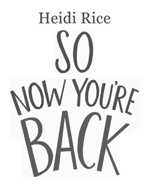 HEIDI RICE’s first romance novel was published in 2007, followed by several international award nominated titles. So Now You’re Back is her commercial fiction debut.