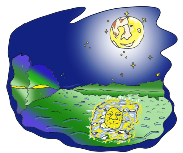 Вова изобразил море, луну, отраженные на волнах очертания прозрачного инопланетянина.