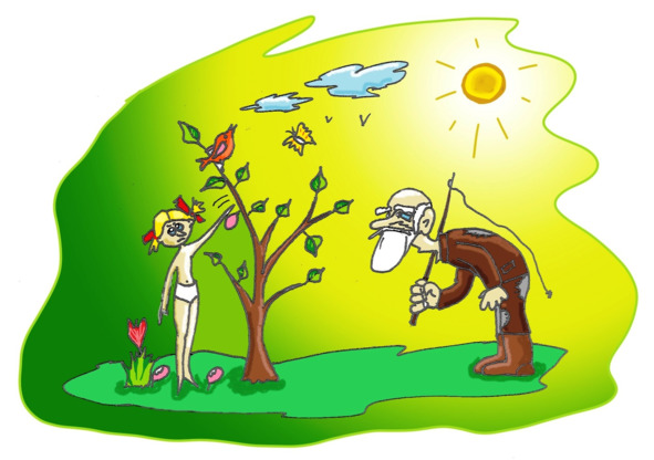 Бежать ей было некуда, поэтому она полезла на яблоню. Панамка свалилась с головы, сучья и кора больно царапали голое тело. Из одежды на Тамаре были только розовые трусики. Дед молча наблюдал за побегом шкодницы.