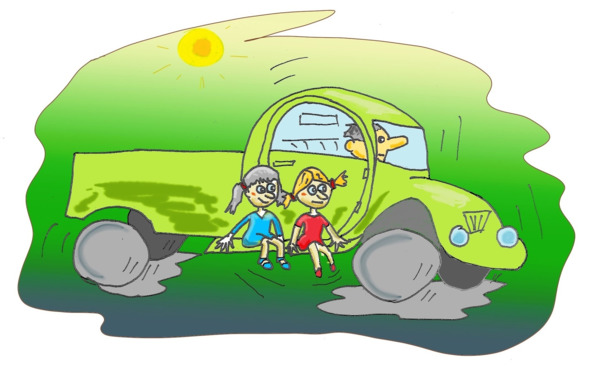 Девчонки уцепились за подножку, скорость была порядочной, мимо пролетали знакомые дома, соседская коза на верёвке, залаял проснувшийся пёс Полкан, разбуженный грохотом проезжавшей машины.