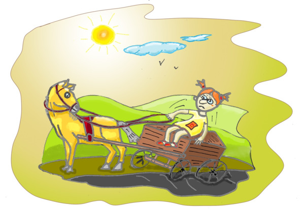 – Но! Пошла, милая! – кричит Таня, подражая деду, дергает поводья, направляя лошадь на дорогу.