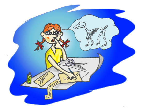 – Очень просто: вырезала и нарисовала на отдельных листочках каждую лапу с костью, череп, ребра и хвост. Затем все это склеила, получился скелет собаки.