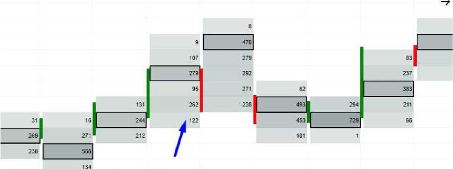 След показывает не только значения открытых, высоких, низких и закрытых позиций, как это делают обычные свечи, но и ордера, которые были выставлены в пределах этой свечи.