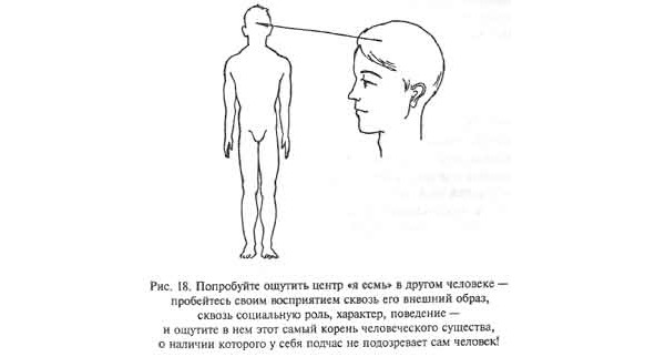 На третьей ступени мы пользовались несколько другими терминами, но теперь мы уже можем сказать: мы передаем и улавливаем мысли от других людей (и от сущностей) при помощи области «я есмь». Когда мы обнаружили эту область у себя, мы можем ощутить, что такая же область есть в центре головы у всех других людей. Есть она и у создаваемых нами сущностей – только не в голове (за отсутствием оной), а в центре того, что можно назвать энергоинформационным телом сущности. Попробуйте ощутить этот центр, эту глубинную истинную суть в другом человеке – пробейтесь своим восприятием сквозь его внешний образ, сквозь социальную роль, характер, поведение – и ощутите в нем этот самый корень человеческого существа, о наличии которого у себя подчас не подозревает сам человек! Это сделать просто, если вы обнаружили эту область у себя. Настроившись на свое ощущение «я есмь», вы легко выйдете на подобную область в другом человеке, как настроенный на нужную волну приемник легко улавливает ее в пространстве. Настроившись на это ядро сознания другого человека, вы можете при помощи ощущений уловить нечто, что скрывается в его сознании. Вы можете почувствовать, к примеру, его намерения. Настройтесь на его намерения и попробуйте ощутить, что он хочет сделать. Проводить такой эксперимент очень удобно, скажем, сидя в уличном кафе и наблюдая за теми, кто сидит за соседними столиками, и за прохожими. Настраиваясь на ядро сознания кого-либо из этих людей, попробуйте ощутить, закажет он сейчас еще порцию мороженого или встанет и уйдет, пойдет прямо или свернет налево, отправится к метро или поймает машину. При достаточной тренировке вы обнаружите, что появился некоторый прогресс: вам все легче настраиваться на ядро сознания других людей и все легче улавливать их намерения.