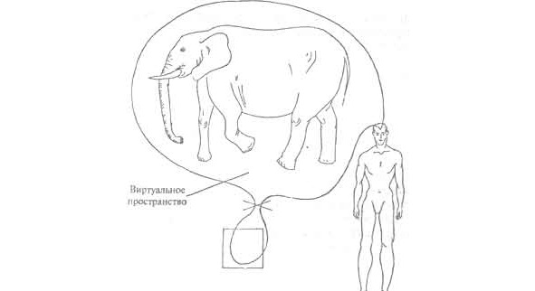 Проведем небольшой тренинг по восприятию всех трех пространств. Посмотрите по сторонам и остановите свое внимание на каком-либо событии внешнего мира – пространства объективной реальности. Например, ваш сосед купил новую мебель. Попробуйте воспринять это событие просто как факт, без оценок. Это ни хорошо и ни плохо, это просто событие. Вы сейчас в пространстве объективной реальности. Теперь оцените значение этого события для вас – ведь факт покупки мебели соседом немного окрашивается вашими эмоциями и фантазией, даже если вы в настоящий момент на предмет просто смотрите. Это значение положительное, или отрицательное, или нейтральное? Для вас это важно? Это может как-то повлиять на вашу жизнь? Думая о значениях, вы попадаете в пространство субъективной реальности. Теперь закройте глаза и представьте себе, что это вы покупаете такую (или другую, еще лучше) мебель. Образ этой мебели возникнет перед вашим внутренним взором – но ведь вам придется словно «лазать» куда-то в другую область вашего сознания. Вот это смещение и происходило в пространстве виртуальной реальности.