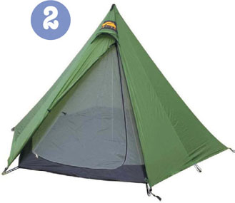 Traditional triangular tents, which are sturdy and offer a lot of headroom. Their weakness is that the sides are unsupported.