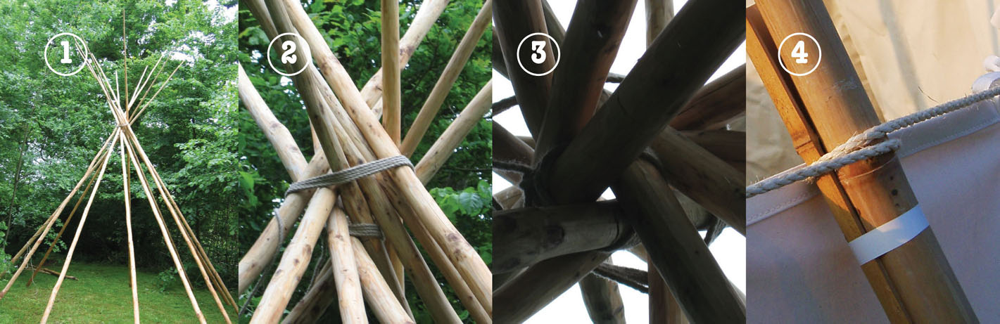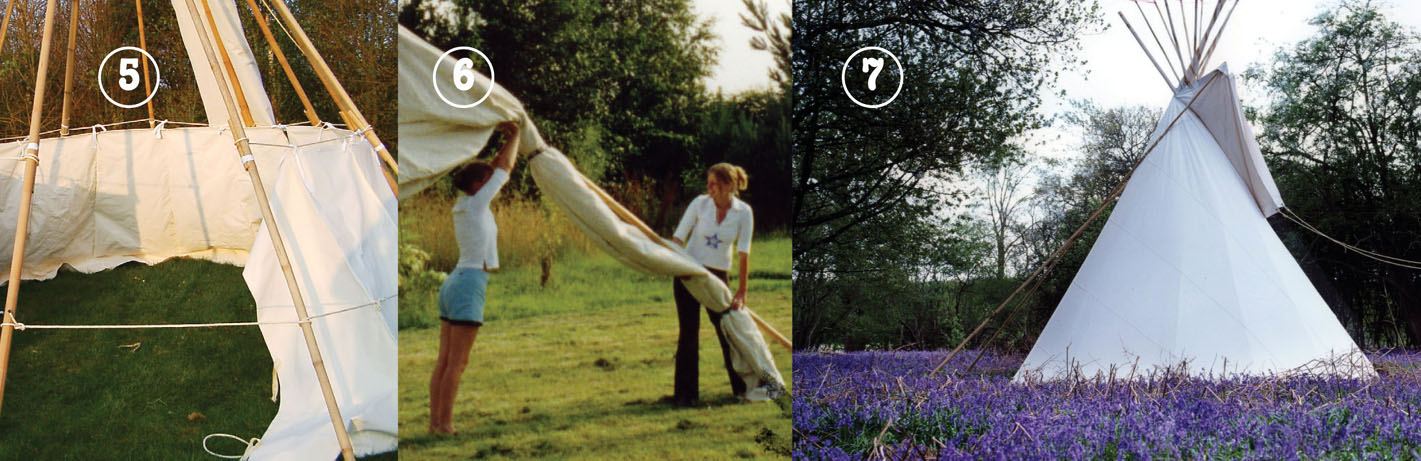 Remember to take a small fire extinguisher and a sharp knife in case you need to get out of the tipi quickly and your exit is blocked. Both of these should be hung from a string attached to one of the tipi poles and should be clearly visible.