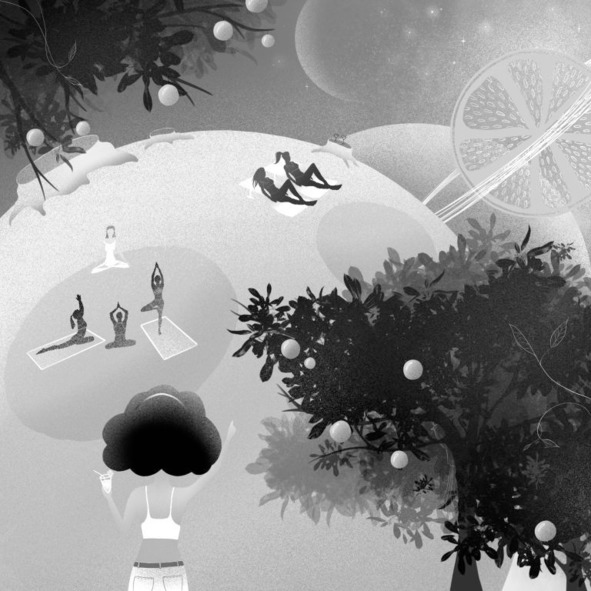 Сначала ей все нравилось. Пели разноцветные птицы, росли незнакомые деревья и плоды на них были странные. Но чему она очень обрадовалась, так это грейпфрутам. Такие родные, знакомые. И было их так много, что розово-оранжевое сияние вместе с солнцем создавало эффектную картинку.
