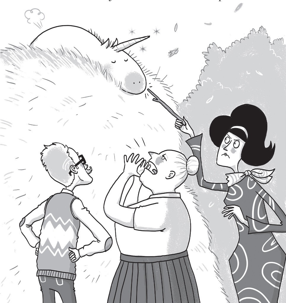 Thinking about Dave made Mira smile. He always made everything super fun, often in unexpected ways. Sure, he sometimes had to be bribed with snacks to do things. And sometimes he caused a teeny, tiny bit of havoc. And he held the Unicorn School record for farting in class. But he didn’t mean to be naughty. Dave was Mira’s UBFF and she loved him.