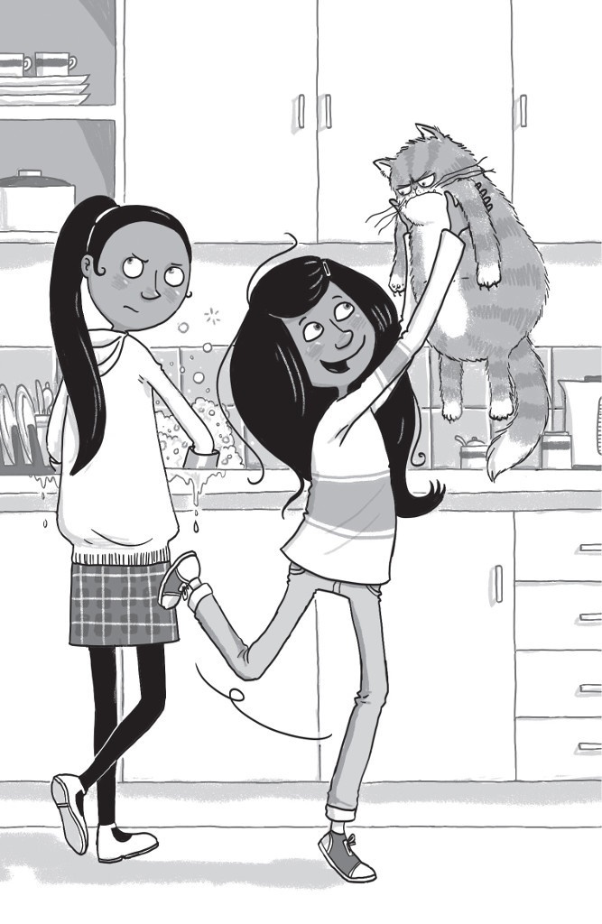 It was a cloudy Tuesday afternoon and Mira was dancing around the kitchen with her cat, Pickles. Mira’s older sister, Rani, rolled her eyes as she finished the after-dinner washing-up (her chore for that week), and flicked water at them as they twirled past the sink.