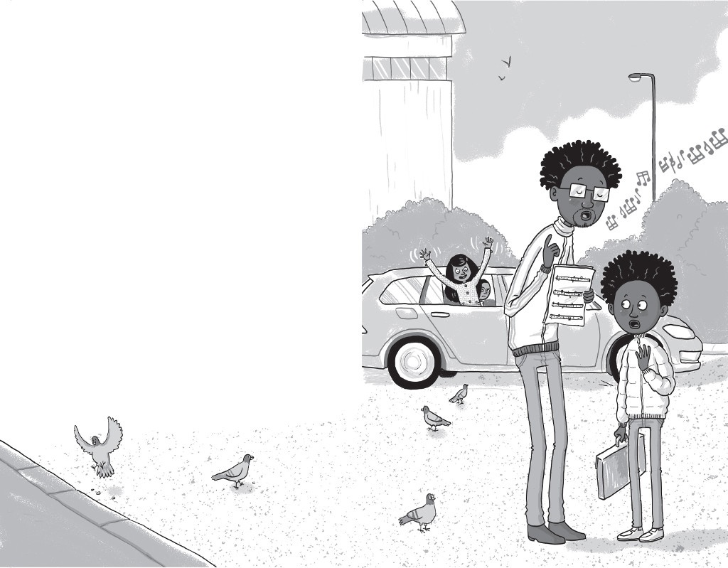 ‘Bye, Dad!’ Mira blew him a kiss through the car window and made sure she had her bag of unicorn treats. ‘Ready, Raheem? Why have you got your eyes closed?’