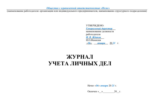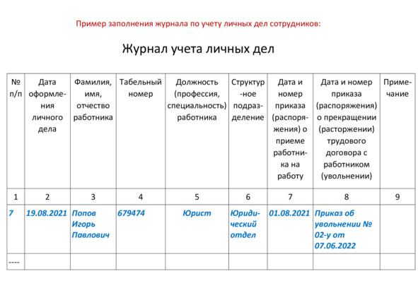 Личное дело регистрируется в специальном журнале или книге учета личных дел работников.