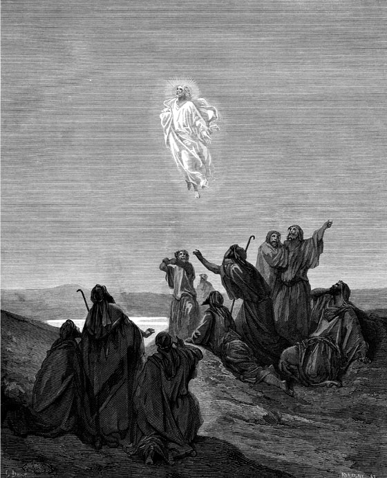 После Своего воскресения из мертвых Иисус Христос жил на земле сорок дней. На сороковой день Он собрал учеников в Иерусалиме и пошел с ними на Елеонскую (Масличную) гору. Пришли на гору, которая была недалеко от Иерусалима, возле Вифании. Христос поднял руки и благословил Своих учеников. Вдруг ученики увидели, что Он начинает отрываться от земли, поднимается все выше и выше, до самых облаков, скрывается за ними и возносится на Небо. Апостолы стоят и ужасаются чудесному вознесению Господа и не знают, что делать. «Что теперь с нами будет, когда наш Господь вознесся на Небо, как мы будем без Него жить?» – думают они. Ученики готовы плакать от печали, что разлучились со своим любимым Учителем. Вдруг к ним с неба слетают два ангела в белых одеждах и говорят: «Галилеяне! Что вы стоите и смотрите на небо? Иисус, Который вознесся от вас, опять придет таким же образом, как вы видели Его восхождение».