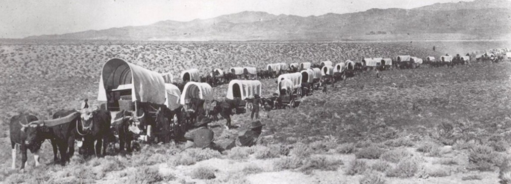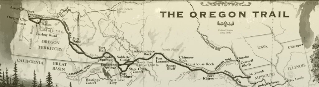 В 1832 г. переселенцы освоили сухопутный маршрут, который вошел в историю под названием Орегонской тропы (Oregon Trail) и был не менее трудным и опасным, чем морской путь. Начинался он в городке Индепенденсе на восточном побережье и извилистым путем длиной более трех тысячи километров выводил на западное побережье в Орегон – земли, расположенные к северу от Калифорнии. При этом никакой дороги проложено не было, переселенцы, вооруженные примитивными навигационными приборами, знали лишь примерное направление через Великие равнины.