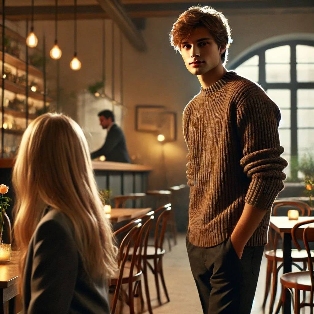 Я повернулась и увидела парня, который спешным шагом шёл к нашему столику. Он был высокий, темноволосый, его черты лица и походка мне показались знакомыми. Он подошёл к Роме, они поздоровались.
