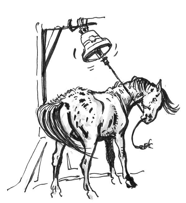 Бродя по площади, слепая, глухая и голодная лошадь случайно набрела на столбы, на которых висел колокол, и, думая, быть может, вытащить из стрехи пучок соломы, схватила зубами за веревку, привязанную к языку колокола, и стала дергать: колокол зазвонил так сильно, что народ, несмотря на то что было еще рано, толпами стал сбегаться на площадь, желая знать, кто так громко требует его суда и защиты.