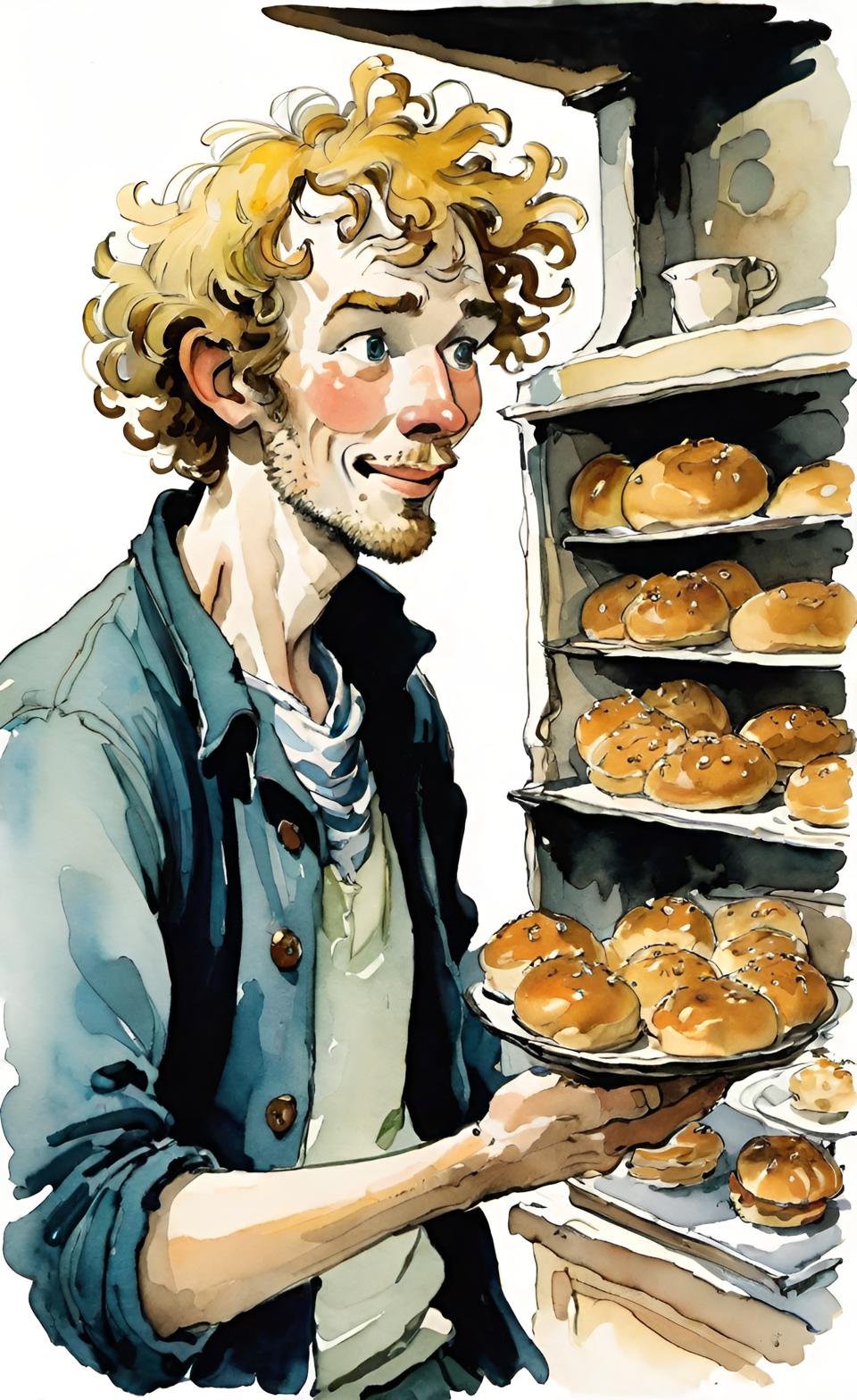 «Кстати!» – Иван понял, что страшно захотел есть. Он зашёл в пекарню, из которой вкусно пахло булочками. Они лежали на прилавке. Иван взял одну и надкусил. В тот же миг перед ним, как гриб после дождя, вырос огромный злой дядька.