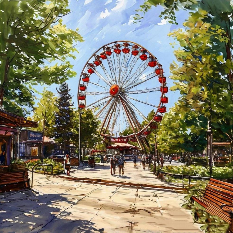 Мы вошли в ворота и попали на главную парковую аллею. По обоим краям, через каждые двадцать метров, в шахматном порядке стояли деревянные лавочки, покрытые лаком. Место между ними было облагорожено высокими вазами-клумбами с цветущими и приятно пахнущими растениями. Раскрывшиеся нежные розовые бутоны привлекали к себе взгляды прохожих и зевак. Клумбы создавали своеобразную ширму из зелени так, что люди, занимающие лавочки по соседству не могли друг друга видеть. Примерно через семьсот метров аллея упиралась в поле с аттракционами и делала круг. Моё внимание привлекло высоченное колесо обозрения. Внутри всё встрепенулось, будто проснулся маленький ребёнок, и я поняла, что очень хочу туда, на самый-самый верх.