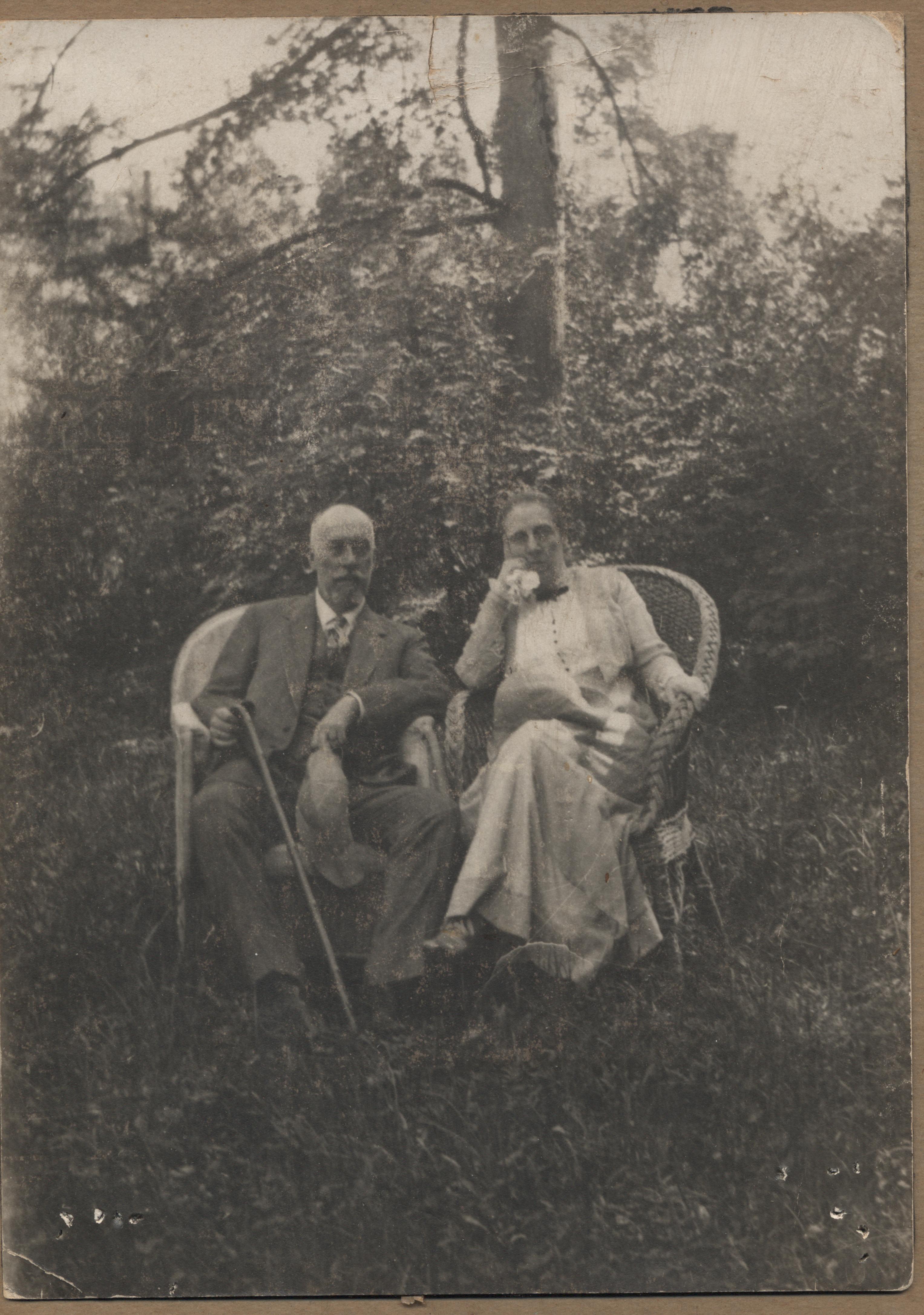 Приведем по этому случаю довольно обстоятельный и любопытный отрывок из той же ее книги воспоминаний. «Во время рождественских каникул 1882 года, – пишет она, – девочки Давыдовы недолгое время гостили в Киеве, приехав туда из Каменки. Мой отец и его брат Александр, который был годом младше, были отправлены в Киев, чтобы познакомиться с девушками. Был организован бал-маскарад. Мальчики прибыли как раз вовремя. Моя мама Анна должна была одеться в костюм швейцарской девушки-крестьянки. Юноши Мекки представились Давыдовым. Поскольку это был вечер накануне бала, в доме царили возбуждение и шум. Сомневаюсь, что молодые люди хорошо рассмотрели друг друга в первый день встречи. Утром в день бала молодые Мекки снова пришли к Давыдовым и предложили свою помощь. Они попали в нужный момент и услышали от мадам Давыдовой, что не хватает принадлежностей для котильона на последнюю часть бала. Молодые люди были посланы в город, чтобы купить как можно больше лент, живых и искусственных цветов, бонбоньерок, карманных зеркалец и открыток. Мекки отправились и, будучи Мекками, сделали более чем щедрые закупки всего необходимого. Танцы имели большой успех. И по крайней мере одно сердце решило, чего оно желает. Когда мой отец вернулся в училище в Петербург, он написал матери письмо о своих чувствах к Анне Давыдовой. Затем он написал её родителям и попросил разрешения снова навестить их. Летом 1883 года он с надеждой отправился в Каменку и там уговорил мою маму. Свидания часто происходили в “Пушкинском гроте”, где Николай фон Мекк сделал предложение Анне Давыдовой. 11 января 1884 года мои родители поженились в Москве» 4.