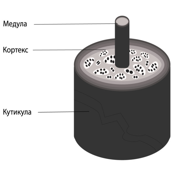 Когда говорят о строении волоса, то его разделяют на корень и ствол (или стержень).
