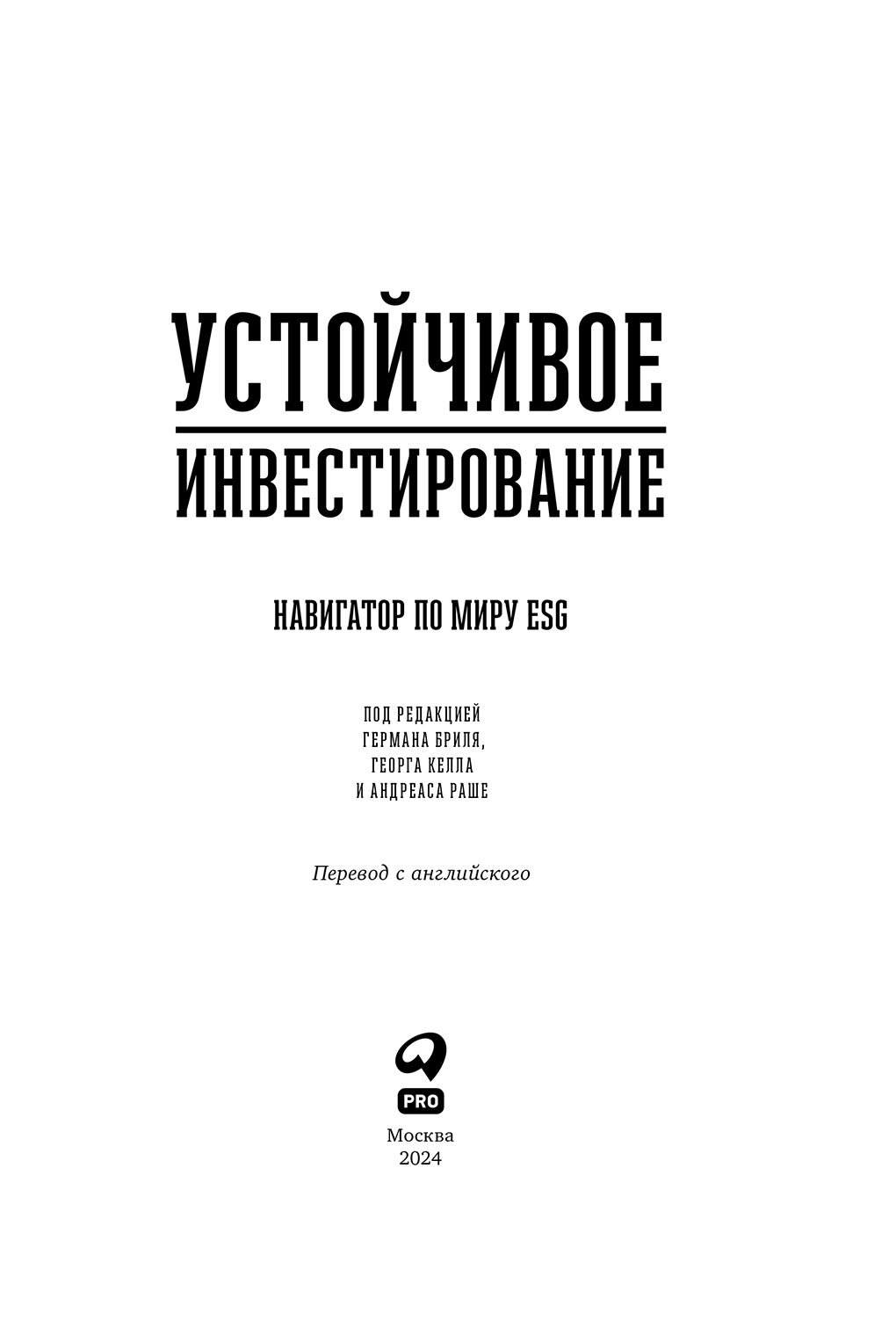 Эндрю Ло,Школа менеджмента СлоунаМассачусетского технологического институтаЭто увлекательная книга, содержащая массу знаний для всех, кто интересуется темой: она будет полезна и опытному инвестору, который хочет лучше понять область устойчивого инвестирования, и любознательному бизнес-лидеру, желающему больше узнать о том, что это такое и как это можно использовать.