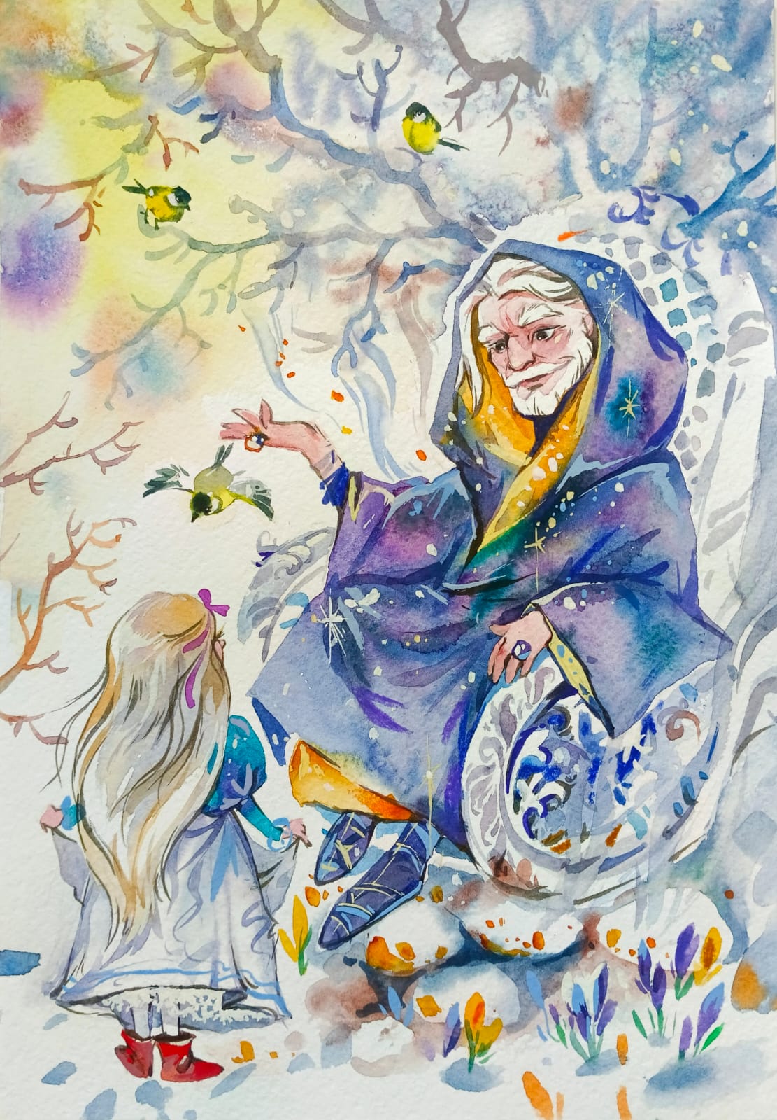 Она стояла одна на поляне, снега осталось совсем немного и пахло крокусами. Лиза еще раз осмотрелась. Вероятно, пока она задумалась, Март все же успел быть. На голубом небе светило весеннее солнце, по обеим сторонам от поляны появились проталины, а синицы-озорницы прыгали с ветки на ветку.