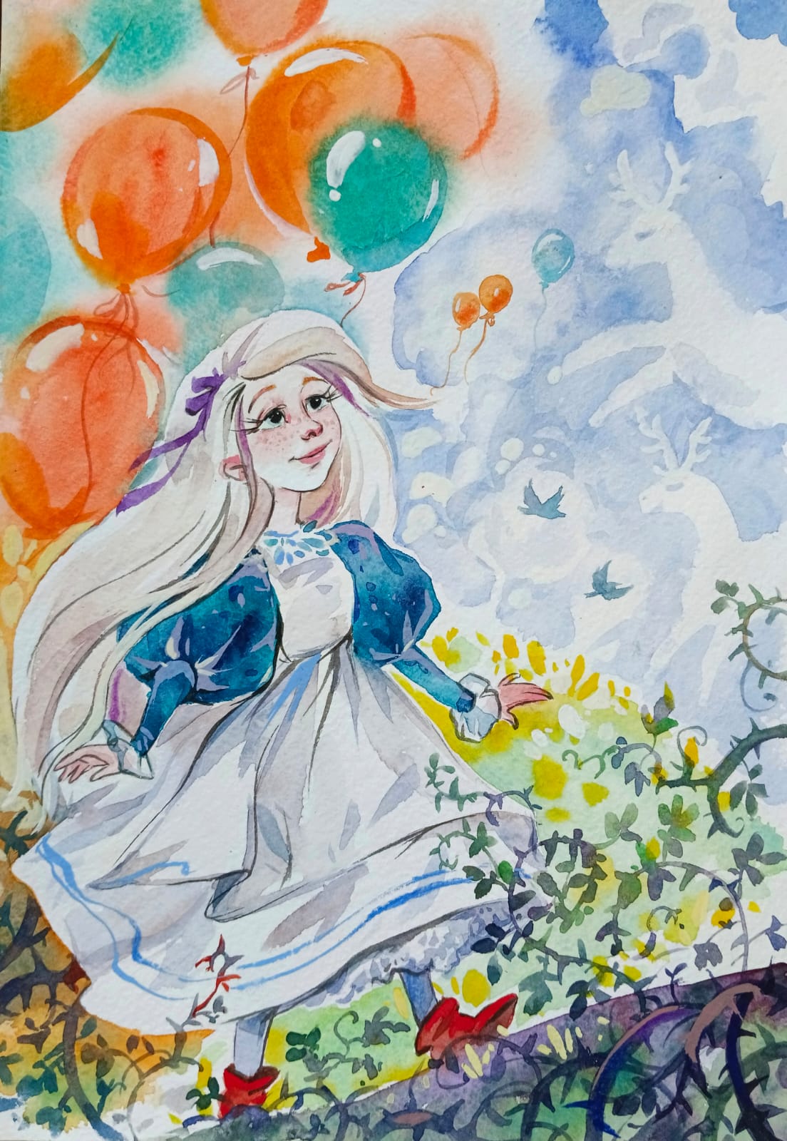 Где она оказалась сегодня, вероятно, не знал никто. Всюду лежал снег, а над тропинкой, по которой она шагала, летали воздушные шары. Они меняли цвет с бежево-розового до желто-лилового, отсвечивая на снег и деревья.