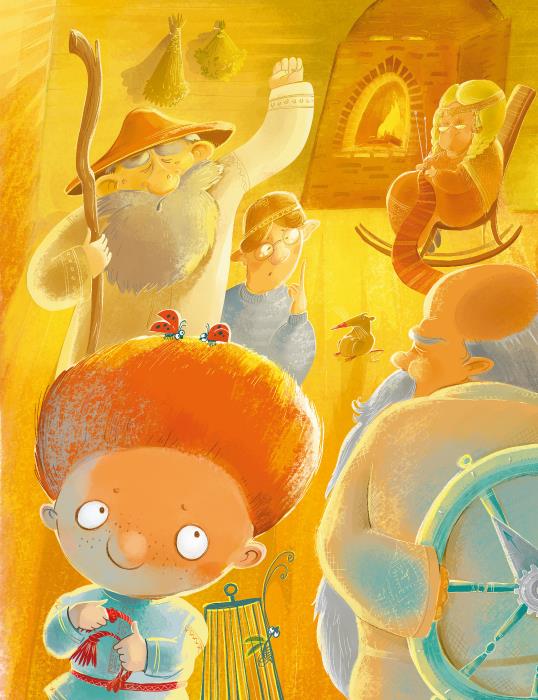 Божьи коровки в шевелюре Ома так развеселились, что подняли на дыбы каждый волосок и рассмешили весь Домовой совет. Кроме дядюшки Рода, который сердито нахмурил лохматые брови и треснул Ома по лбу увесистым «послушным посохом». Из глаз Ома посыпались фиолетовые звёздочки, веснушки с носа испарились, а божьи коровки вмиг сложили побледневшие волоски в две аккуратные копны, разделённые ровной бороздой.