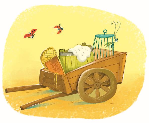 Ом бежал изо всех сил, но вдруг колесо хрустнуло – и тележка завалилась набок. Сокровища рассыпались по мокрому асфальту. Оказалось, всему виной камень, валяющийся на дороге. Ом поднял расколотое надвое колесо и так разволновался, что все божьи коровки попрятались. Как же теперь ему добраться до дома вовремя?