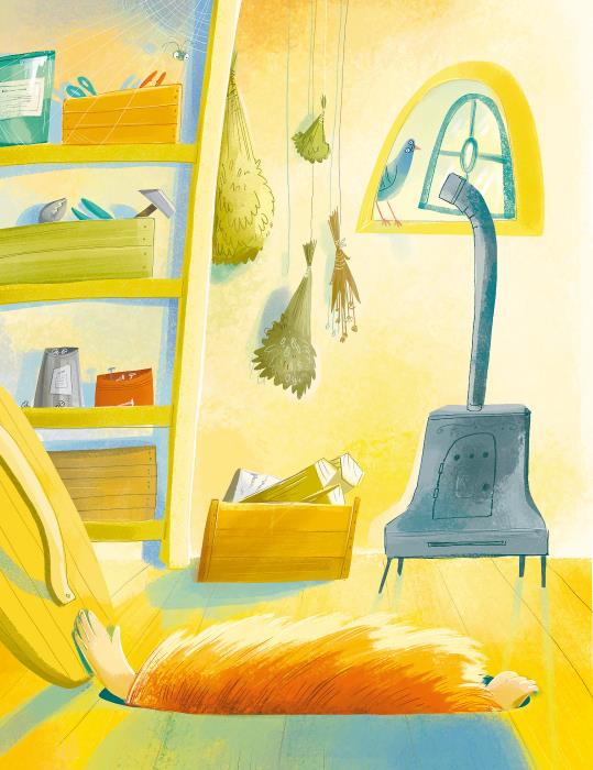 На крошечном чердаке было светло и уютно. Сквозь распахнутое слуховое оконце в каморку прокрались золотистые предзакатные лучи. Задорно подмигивая, они играли с солнечными зайчиками в догонялки. Тёплый ветерок лохматил непослушные рыжие прядки Ома и ласково щекотал его за ушами. Под обитым сосновой дранкой потолком шелестели листьями пахучие берёзовые веники. У окна покачивались связки сушёных трав: ромашки, тысячелистника и шалфея. Вдоль белёной стены, на крепких дубовых полках, стояли ящики с молотками, гвоздями, отвёртками, кусачками и плоскогубцами. В пузатом, потемневшем от времени буфете Ом обнаружил накрытые тканью склянки с сушёной земляникой и мешочек с лесными орехами.