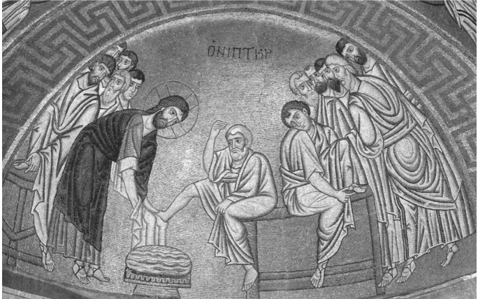 Омовение ног. Мозаика. Монастырь Осиос Лукас, Византия. XI в.