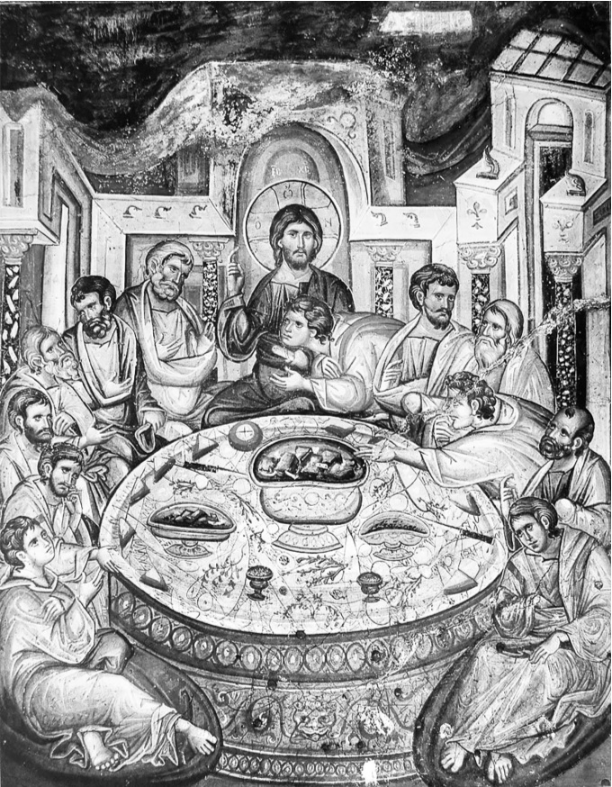 Тайная Вечеря. Фреска церкви Святого Георгия в Старо Нагоричино, Македония. 1316–1318 гг.