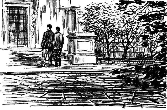 …Первым проснулся Грязнов. В открытое окно глядело сентябрьское солнце. Из сада доносилось беспокойное птичье щебетанье. Осторожно поднявшись, чтобы не разбудить Ожогина, юноша бесшумно подошел к окну. В кустах сирени с яркими, еще не тронутыми желтизной листьями шумно копошились воробьи. На ветвях развесистой яблони резвились какие-то краснобрюхие пичужки.
