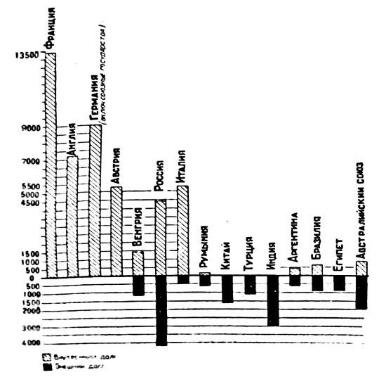Соотношение между внешним и внутренним долгом в главнейших странах мира накануне империалистической войны представлено в диаграмме № 1.