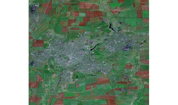 Шахты. Вид из космоса. Интересно – если присмотреться внимательно, то видно, что планировка города отображает пятиконечную звезду. Символ трактуется во всех религиях Мира и означает например, пятиэлементый состав Мира -воздух, вода, огонь, земля, эфир.