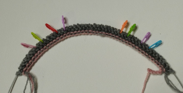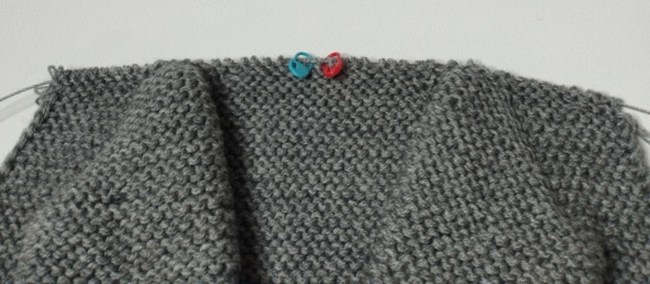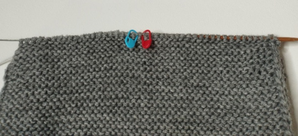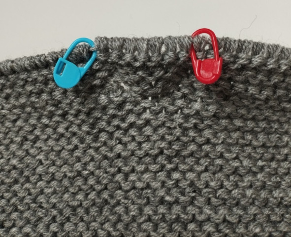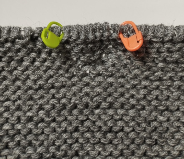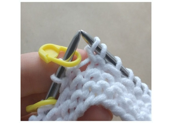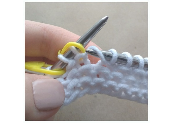 Разворачиваем вязание на лицевую сторону и надеваем маркеры: