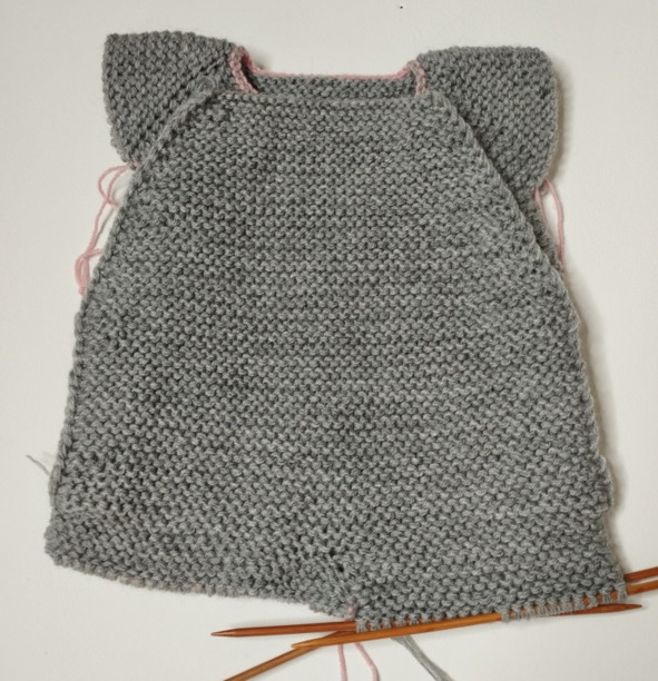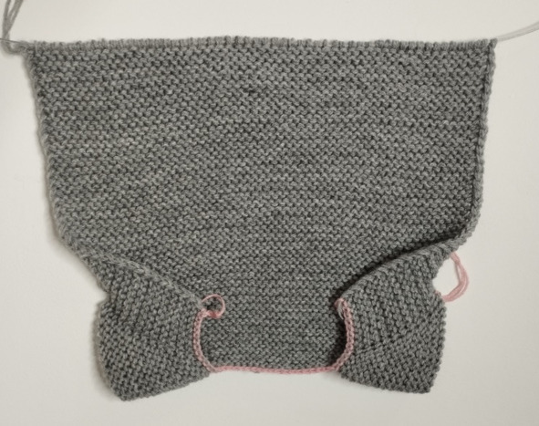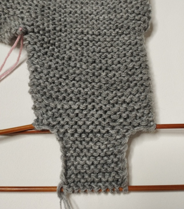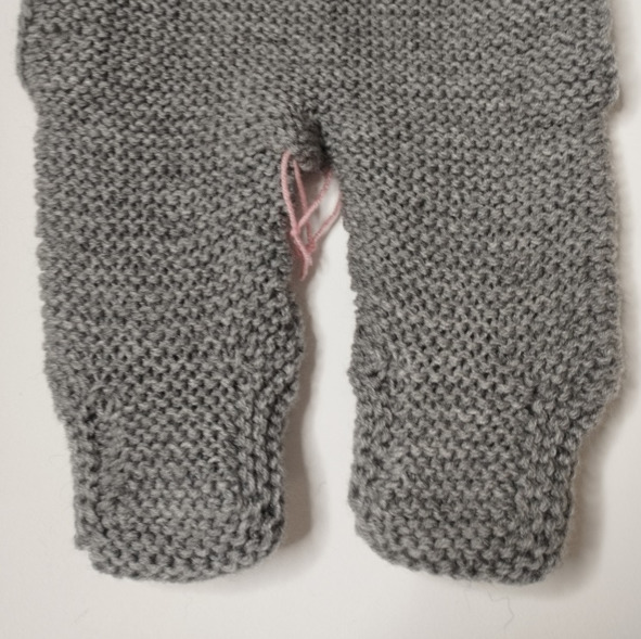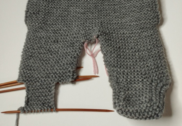 Далее мы будем соединять переднюю и заднюю часть комбинезона и затем вязать по кругу.
