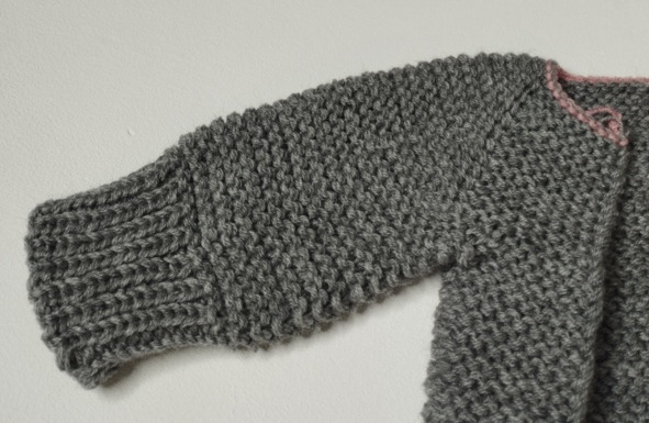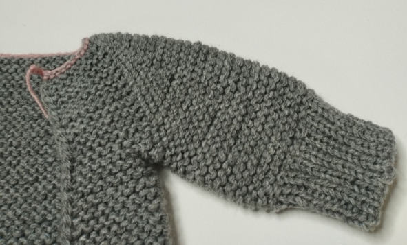 1 ряд: набираем 4 петли по краю спинки, далее вяжем 28 лицевых рукава и набираем еще 2 петли по краю переда (всего 34 петли 4+28+2 =34)